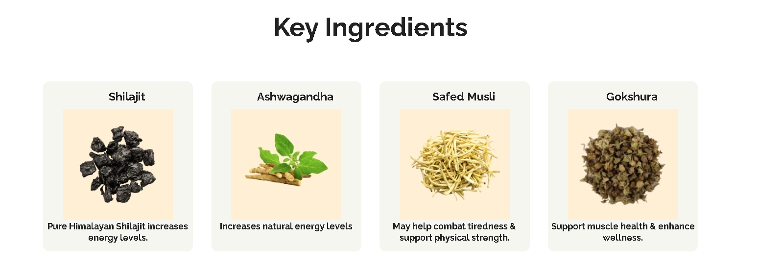 Each ingredient is selected based on principles from the ancient Ayurvedic system. According to Ayurveda, these traditional herbs may help support strength, energy, and stamina. These Ayurvedic ingredients have been time-tested and are commonly used by individuals seeking natural support for wellness and performance.